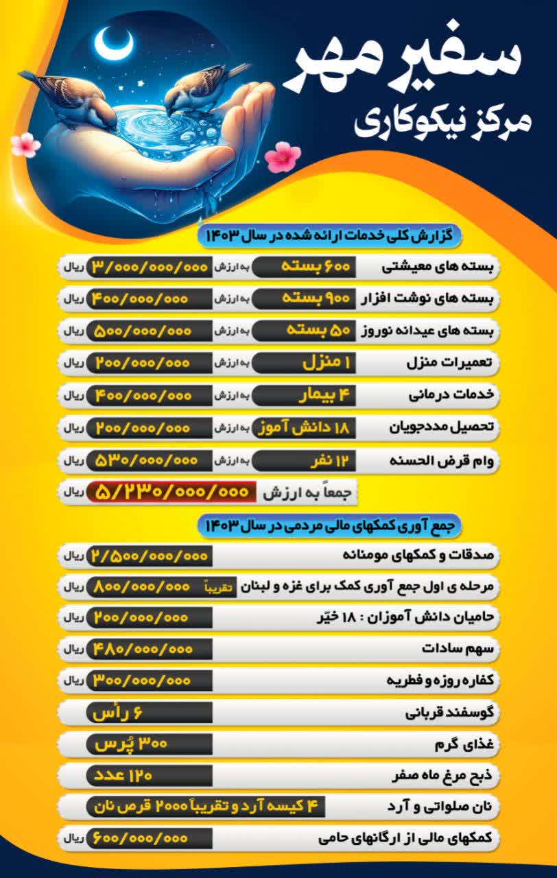 گزارش کلی مجموعه اقدامات مرکز نیکوکاری سفیر مهر اهواز در سال ۱۴۰۳ ه.ش